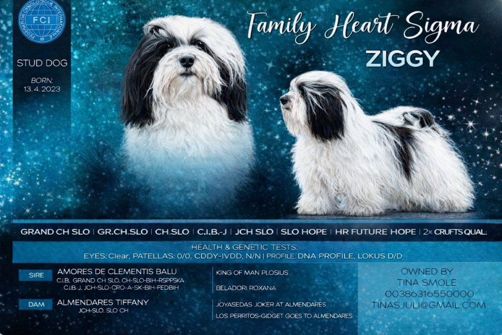 Dosežki: GRAND CH SLO, CH SLO, CH BIH, CH Republika Srpska, INTERNATIONAL JUNIOR BEAUTY CHAMPION (C.I.B.-J), JCH SLO-A-SK-HR-BIH-Federacija BIH, #1 TOP TOY Havanese 2022 (SLO), JUNIOR CLUB WINNER 2022 (SLO), ALPE ADRIA WINNER 2022 (SLO), POLHOV GRADEC DOLOMITE WINNER 2023 (SLO), ALPENSIEGER 2022 (A), JUNIOR WINTER TROPHY 2022 (A), JUNIOR CHRISTMAS WINNER 2022 (A), JUNIOR CLUB WINNER 2022 (A), JUNIOR SUMMER WINNER 2022 (BIH), 4 x CRUFTS Kvalifikacije
